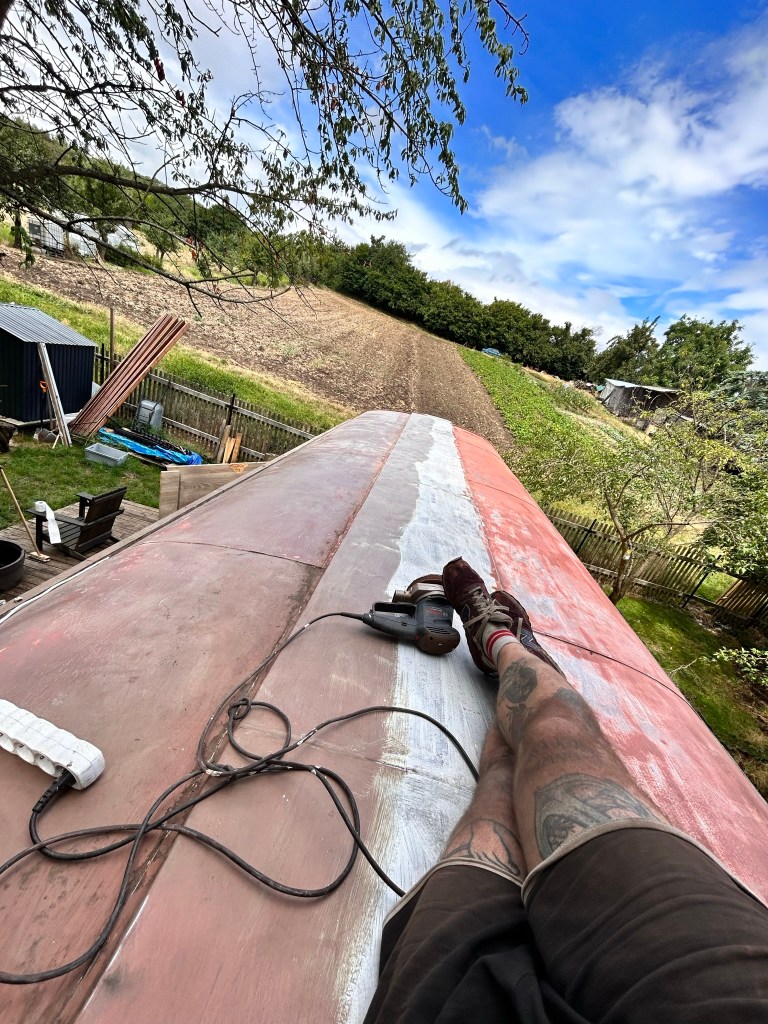 Co všechno vlastně rekonstrukce maringotky a podobných příbytků obnáší? V první řadě je důležité opravit střechu. Na plechovou krytinu maringotky majitel použil antikorozní vodou ředitelnou barvu Balakryl Metal 2v1, která spojuje vlastnosti základního i vrchního nátěru. Střechu chrání před korozí i povětrnostními vlivy, a prodlouží tak její životnost. Neředěná barva se nanáší na povrch očištěný od rzi, nepřilnavých nátěrů a jiných nečistot. Pro dosažení nejvyšší antikorozní ochrany se doporučuje aplikovat 2–3 vrstvy s odstupem čtyř hodin.